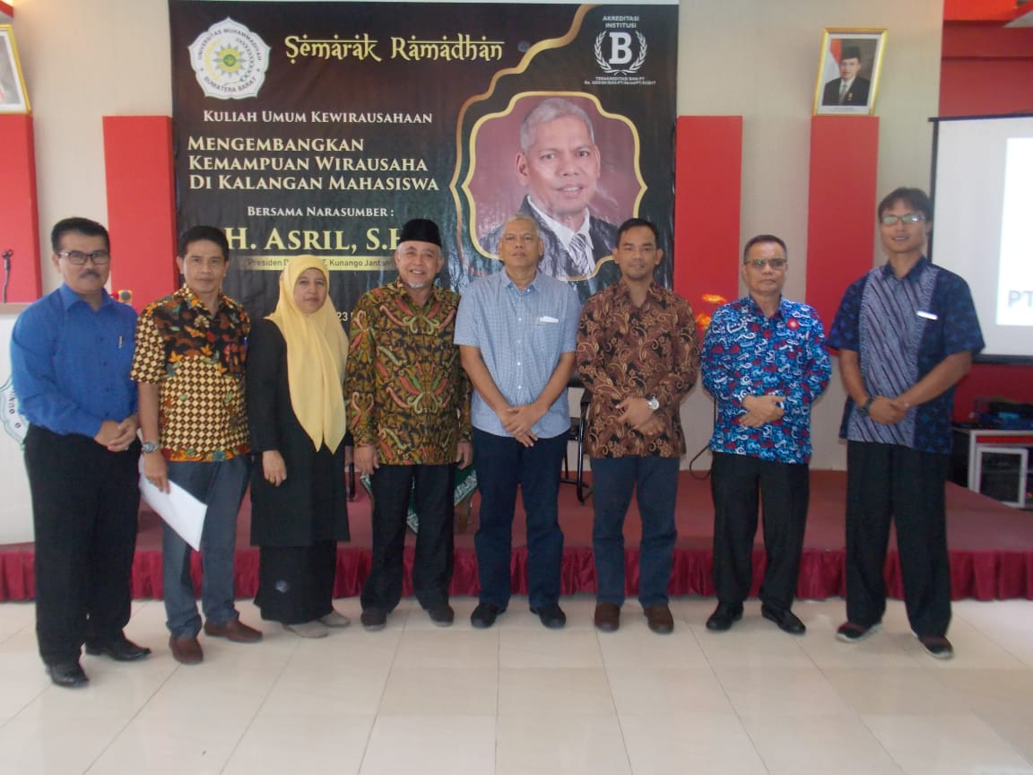 [HUMAS_UMSB]. Dalam rangka Semarak Ramadhan, Universitas Muhammadiyah Sumatera Barat angkat kegiatan seminar kewirausahaan dengan tema “Mengembangkan Kemampuan Wirausaha di Kalangan Mahasiswa” bersama narasumber H. Asril S.H Presiden Direktur PT. Kunango Jantan Pada hari Kamis tanggal 23 Mei 2019 di Kampus III Kota Bukittinggi.